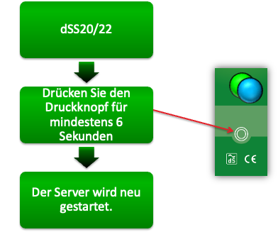 - Die Taste befindet sich unterhalb der LED am Server.